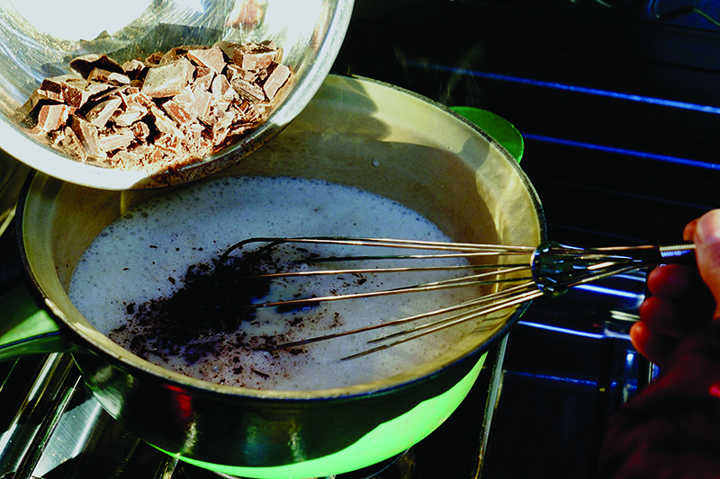 • Here’s the ticket to the most flavorful, smooth-textured and rich hot chocolate: boil twice. The milk (or milk alternative) gets whisked and boiled first. After the chocolate is whisked into the milk, turn the heat down and allow the chocolate mixture to come to a gentle boil. Be watchful during the boiling and use a tall pot. Turn the heat down at the first sign the milk or chocolate mixture is beginning to rise too much in the pot. Too much heat will cause the milk or milk/chocolate mixture to rapidly foam up and spill out of the pot.
