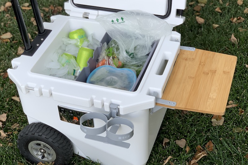 The first thing that stands out when unpacking a ROVR is noticing the wheels. In designing the RollR cooler, lots of attention and care was put into the rolling system—instead of slapping some cheap wheels with hollow plastic “tires” molded with a plastic rim, ROVR fully committed with actual air-filled all-terrain tires mated to trick aluminum, five-spoke hubs. That detail alone is impressive.