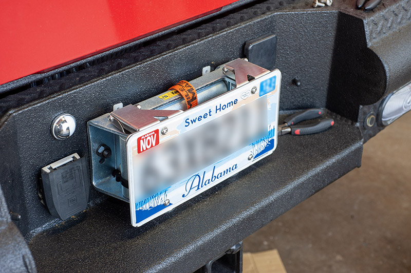 Then we used a flip-up license plate holder from Tuffy that attaches to the fairlead to keep the truck street legal.